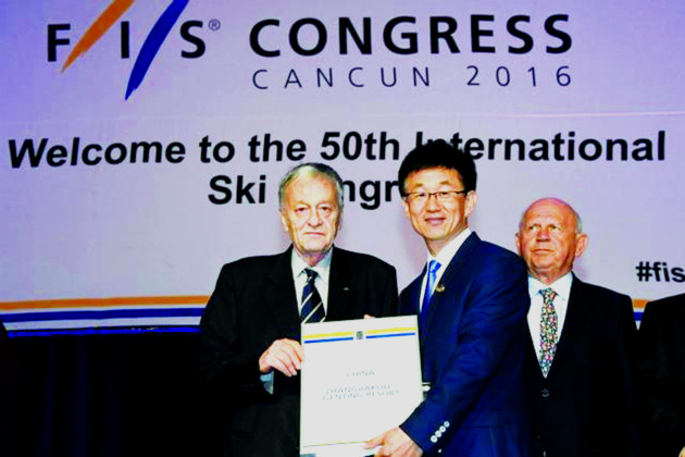 国际雪联理事会第50届代表大会日前在墨西哥坎昆举行,会议进行了2021年自由式滑雪和单板滑雪世锦赛主办权的选举,与会代表通过不计名投票的方式,决定中国张家口云顶滑雪场成为2021年世锦赛的举办地。张家口市政府市长马宇骏与国际雪联主席卡斯帕签订了《主办城市合同》。