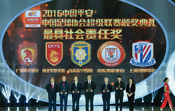 11月5日晚,2016中国平安中超联赛颁奖典礼在昆明滇池会展中心举行,中国足协、16家俱乐部、地方协会以及赛区均派代表出席,中国足坛元老名宿也纷纷到场祝贺。现场各大奖项的悬念依次揭开,其中,河北华夏幸福足球俱乐部荣获2016中超最具社会责任奖及2016中超国家贡献奖。