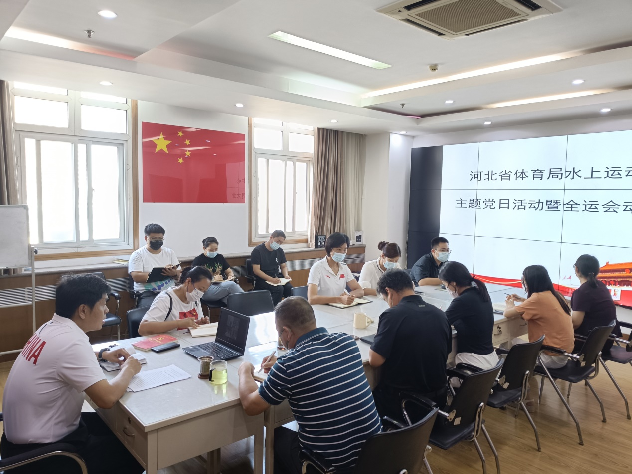 为进一步推进学习习近平总书记“七一”重要讲话和“四史”宣传教育走深走实,将“四史”宣传教育与提升运动员出征全运会精神面貌深度融合,9月2日下午,水上中心开展主题党日活动暨全运会动员大会,中心全体人员通过线上线下形式同步参会。